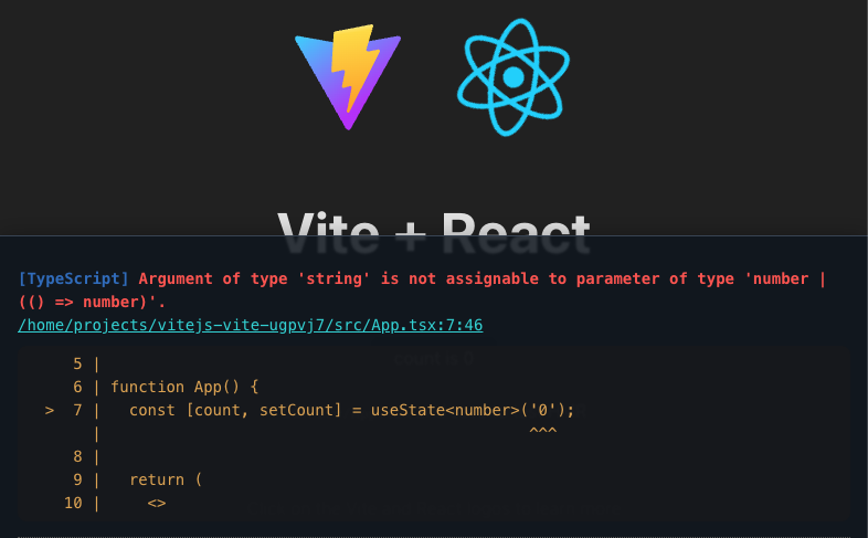 I was looking for how to improve my vite react project by showing type-check or lint error like CRA's error overlay. Then I found a plugin called vite-plugin-checker. The configuration is pretty straightforward.
